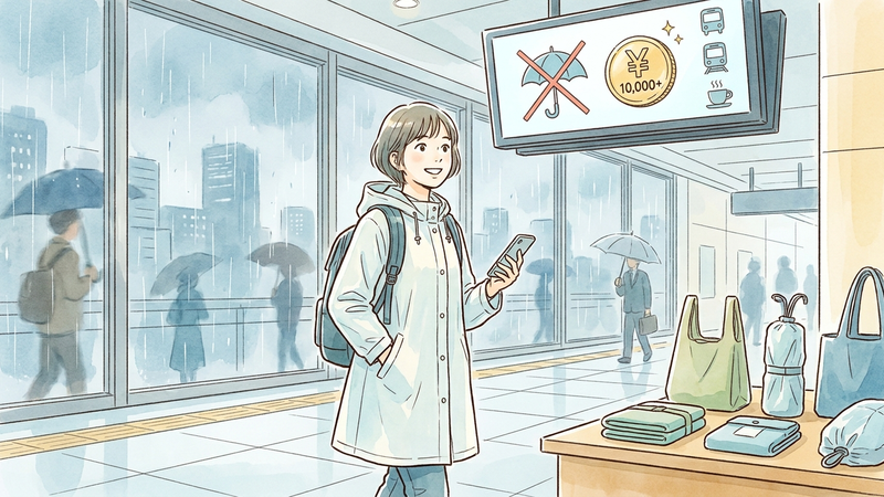 ゲリラ豪雨の多くは、一つの場所で激しく降り続く時間が比較的短いという特徴があります。雨雲レーダーを確認し、15〜30分程度で雨雲が通過しそうであれば、無理に移動せず雨宿りを選択するのが賢明です。駅のコンコースや商業施設など、迷惑にならない場所で待機しましょう。 - 公共交通機関での水滴マナーを徹底する