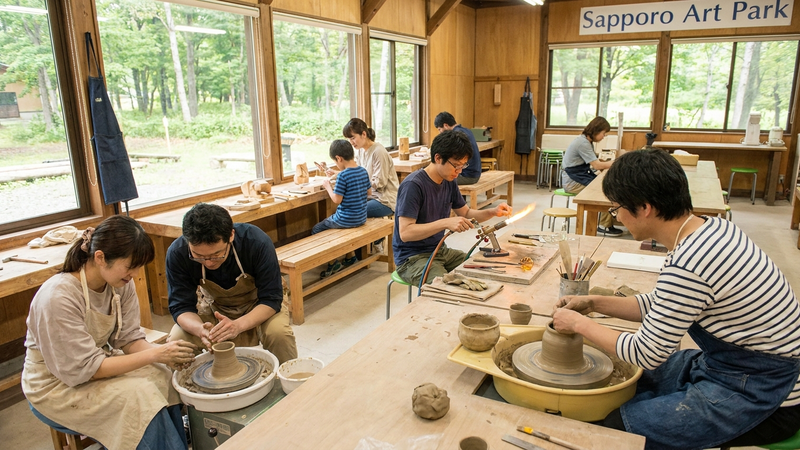 札幌の豊かな自然に囲まれた札幌芸術の森の中に位置する「クラフト工房」は、様々な工芸体験を通じて、ものづくりの楽しさを味わえる施設です。ここでは、温かみのある陶芸、きらめくガラス工芸、手触りの良い木工、そして色彩豊かな染織など、多岐にわたる専門的な工芸技術を、初心者の方でも気軽に体験することができます。
