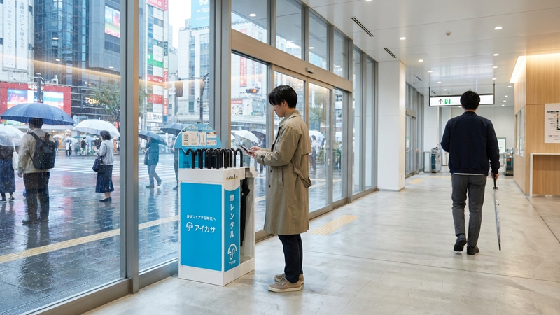 ビニール傘の使い捨てや、個人での傘の管理といった課題から解放される新しい方法として、傘のシェアリングサービスが普及しつつあります。これは、必要な時に、必要な場所で傘を借り、使い終わったら最寄りの専用スポットで返却できる仕組みです。