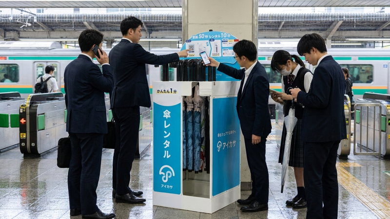 - 急な雨でも安心!:駅を降りたらすぐに傘を借りられるので、突然の雨に慌てる必要がありません。