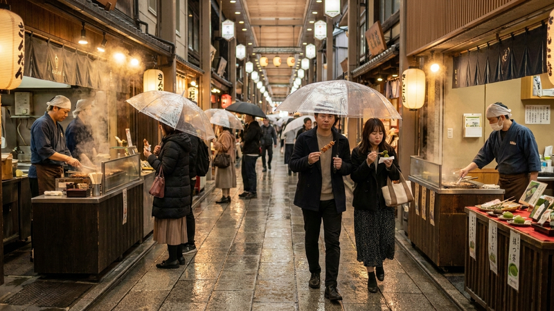 屋根があるので、雨の日でも濡れる心配は一切ありません。活気あふれる市場の雰囲気を満喫しながら、京都ならではの食文化や人々の暮らしに触れることができます。お土産探しにも最適で、京都の「美味しい」を存分に体験できることでしょう。