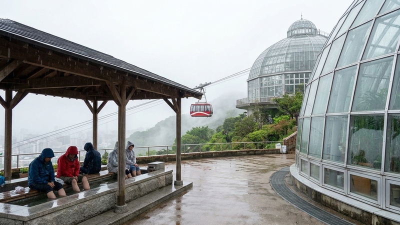 雨の日のロープウェイは、霧に包まれて幻想的な雰囲気。温室の植物たちは生き生きとしていて、雨の日でも気分が上がりました。足湯で温まるのも最高です!