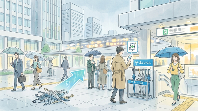 天気予報は、気象庁、日本気象協会、ウェザーニューズなど、複数の事業者から発表されており、予報モデルの違いから予測に差が出ることがあります。特に、ゲリラ豪雨のような局地的な天候変化は予測が困難です。スマートフォンアプリなどで複数の予報を比較し、すべてのソースで雨の予測が一致している場合は傘を検討するなど、総合的な判断を下すことでリスクを管理できます。 平日の移動を9割カバーする「置き傘」という保険戦略 予期せぬ天候の変化に最もシンプルかつ効果的に備える方法が「置き傘」です。自宅以外の特定の場所に傘を常備することで、日々の荷物を確実に減らすことができます。 主な置き場所は、一日の大半を過ごす職場や学校です。デスクの横やロッカーに一本傘を置くだけで、「会社から駅までの帰路」や「ランチでの外出」といったシーンでの突然の雨に対応できます。これは、特に内勤が中心の方にとって極めて有効な戦略です。毎朝の「傘、いるかな?」という悩みから解放されるだけでも、大きなストレス軽減につながります。 置き傘を選ぶ際のポイントは3つです。 機能性とデザイン:ビジネスシーンでも浮かない、黒や紺などの無地でシンプルなデザインが基本です。共有の傘立てに置くことを想定し、高価なブランド傘は避け、盗難リスクの低いものを選びましょう。 識別:他人の傘と間違えないよう、持ち手や先端に目印となるシールやカラーテープを付けておくと紛失防止に役立ちます。 ルールの確認:オフィスによっては、私物の傘を置く場所が指定されている場合があります。事前に職場のルールを確認し、決められた場所に保管することが重要です。 ただし、置き傘は自宅から最寄り駅までの道のりや、休日の外出には対応できません。あくまで「平日の活動範囲をカバーする保険」と位置づけ、他の方法と組み合わせるのが賢明な活用法です。 傘を「所有」から「共有」へ。傘シェアリングという新常識 天気予報の確認や置き傘でもカバーしきれない「外出先での突然の雨」や「予報が外れた」といった事態。こうした状況への最終解答となるのが、傘のシェアリングサービスです。必要な時に、必要な場所でだけ傘を利用するこの仕組みは、傘を「所有」するストレスから私たちを解放します。 代表的なサービス「アイカサ」は、駅や商業施設、オフィスビルなどに設置されたスポットで、スマートフォンアプリを使って手軽に傘をレンタル・返却できる仕組みです。例えば、朝は晴れていても、仕事帰りに駅を出たら大雨だった場合。改札近くのスポットで傘を借り、自宅近くの提携コンビニで返却する、といった柔軟な使い方が可能です。 このサービスの最大の利点は、「傘を持ち歩くか否か」を悩む必要がなくなる点にあります。料金は1時間140円からと手頃で、急な雨に対応するためのコストとして合理的です。さらに、月額360円の使い放題プランもあり、月に3回以上利用する可能性があるなら、ビニール傘を都度購入するよりも経済的です。年間約8,000万本が廃棄されると言われるビニール傘の消費を減らすことにもつながり、環境負荷の低減にも貢献します。もはや傘は、個人で管理するモノではなく、社会全体で共有するインフラの一つになりつつあるのです。 まとめ 折りたたみ傘を持ち歩く日々のストレスは、4つの具体的な方法を組み合わせることで解消できます。まず、降水量や雨雲レーダーといった「天気予報の指標」を深く読み解き、不要な携帯を減らすこと。次に、職場などに「置き傘」を常備し、平日の行動範囲をカバーすること。そして、撥水性の高い衣類や小物を活用し、多少の雨なら対応できる準備を整えること。最後に、これらの対策でも防げない不測の事態には、「アイカサ」のような傘シェアリングサービスを利用する。これらの選択肢を使い分けることで、雨に振り回されることなく、より身軽で快適な毎日を送ることが可能になります。